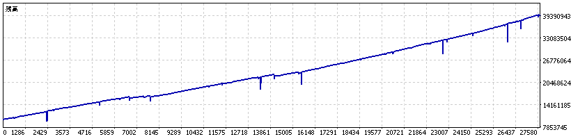 3モード中最も狭い間隔・高い倍率に設定。ロットが急速に積み上がるため含み損の膨らみも大きくなります。